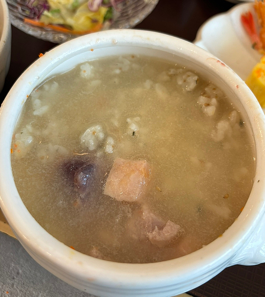 오차즈케 라고 써있어서 녹차인줄 알았는데 냄새가 달라서 무슨 육수인지 여쭤보니 사골 육수라고 하심.